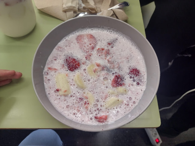 Amics i amigues ,aquests dies continuem treballant en el projecte d'alimentació saludable , aquí us deixem una bonísima recepta per fer un batut de plàtan i maduixa. Aquesta recepta està plena de vitamines i es molt saludable pel nostre cos.